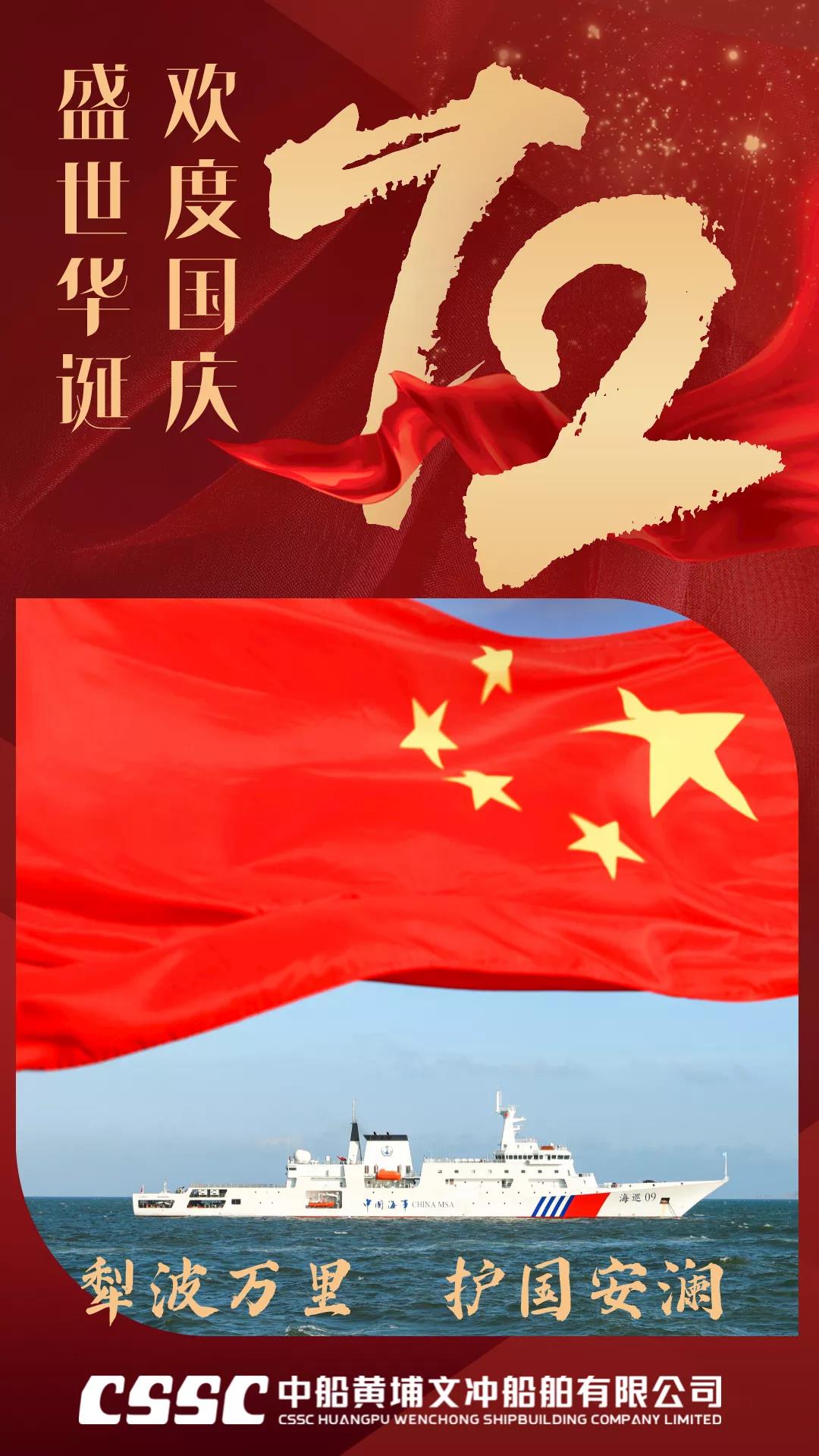 欣望江山千里秀,歡送祖國萬年春,中國船舶七〇九所祝福新中國72歲生日快樂,“中國號”巨輪劈波斬浪再創新輝煌!