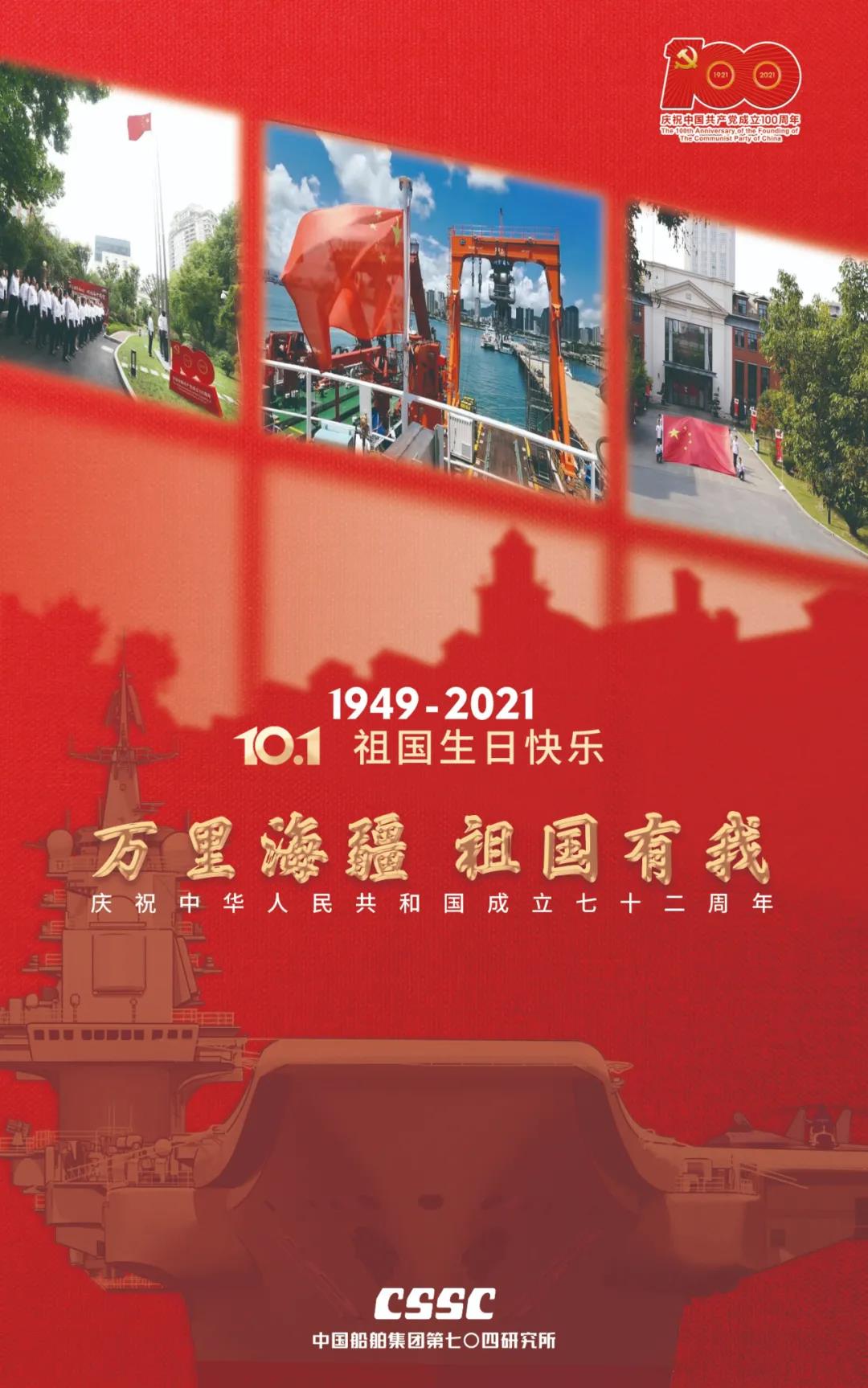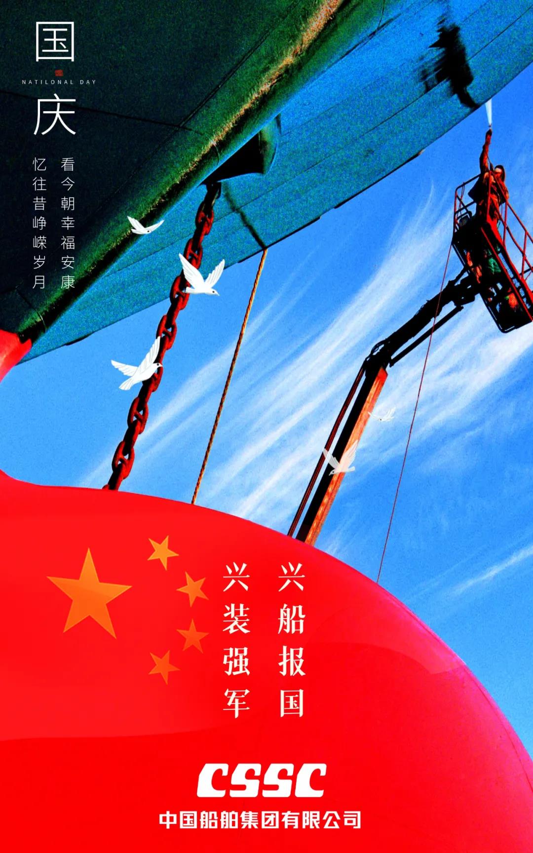 今天,我們迎來新中國72周年華誕。作為我國海軍裝備建設的主力軍,中國船舶大船集團將不忘初心,牢記使命,堅定貫徹海洋強國、制造強國、科技強國國家戰略,聚焦主責主業、聚力興裝強軍,為實現中華民族偉大復興的中國夢而不懈奮斗。