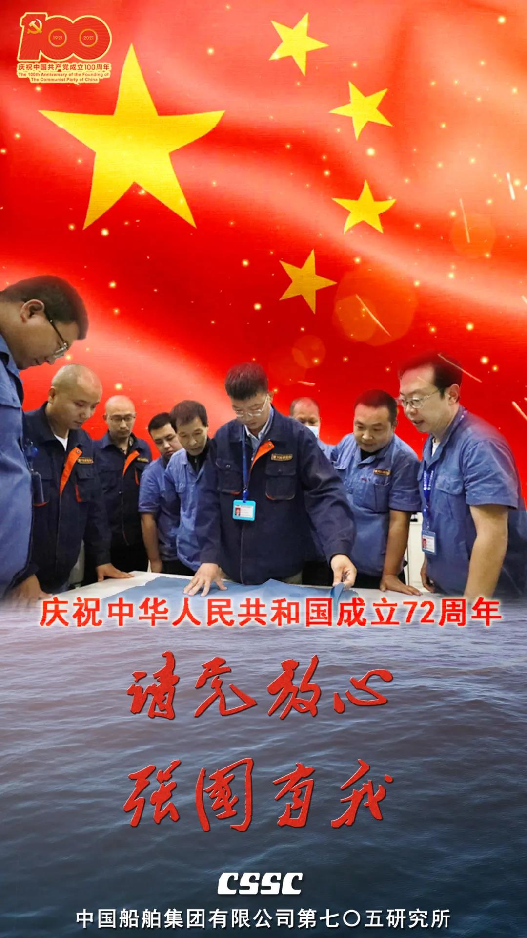 72年篳路藍縷,72年風雨兼程,正值建黨百年之際,恰逢新中國72周年華誕,中國船舶七二六所為祖國獻上最真摯的祝福!祝福偉大祖國繁榮昌盛!七二六人將繼續用智慧和汗水譜寫水聲華章,用創新和拼搏開拓新時代新征程,為建設海洋強國貢獻磅礴力量!