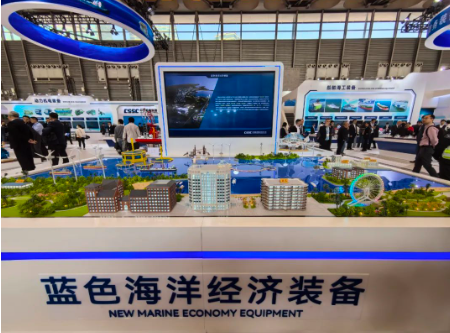 藍色海洋經濟裝備專區聚焦“深海養殖+海上文旅+海上風電”新興產業,展示互聯互通的繁榮業態景象和助力海洋經濟高質量發展的最新成果。