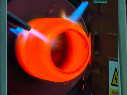 “在1180℃的高溫下,我們可以把直徑385毫米~660毫米的特種鋼管,變成兩端為球面封頭的無縫高壓氣瓶。”專家介紹。