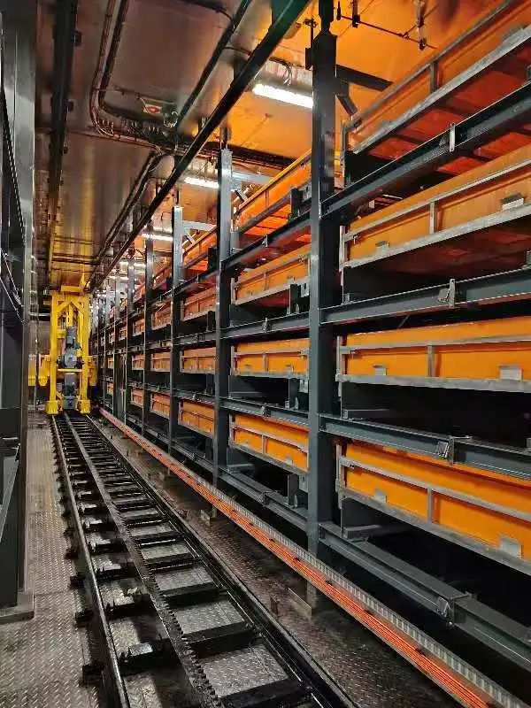 # 巖心庫內部配置了船載巖心庫自動倉儲系統,實現了巖心托盤的自動存取;