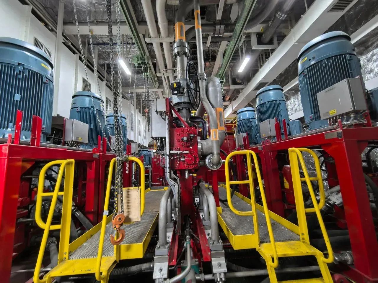 “夢想”號鉆井系統(tǒng)提升能力強、反應(yīng)速度快,離不開配套的液壓提升系統(tǒng)。系統(tǒng)配有12臺泵,裝機容量達4100千瓦,高壓管路長達8000多米,直徑達270多毫米,最高壓力為350公斤/平方厘米,是家庭高壓鍋耐壓的175倍。