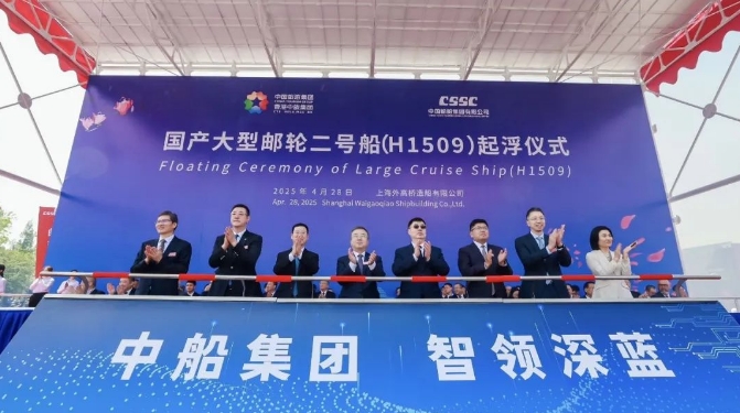 4月28日,第二艘國(guó)產(chǎn)大型郵輪“愛(ài)達(dá)·花城號(hào)”起浮儀式在中國(guó)船舶集團(tuán)有限公司旗下外高橋造船舉行。中船集團(tuán)黨組副書記、董事、總經(jīng)理王國(guó)強(qiáng)出席儀式并致辭。工信部裝備工業(yè)二司司長(zhǎng)徐春榮,中旅集團(tuán)黨委副書記、總經(jīng)理范云軍出席儀式并致辭。文旅部產(chǎn)業(yè)發(fā)展司副司長(zhǎng)馬力,中船集團(tuán)黨組成員、副總經(jīng)理胡賢甫,中旅集團(tuán)黨委副書記、董事石善博,上海市經(jīng)濟(jì)和信息化委員會(huì)副主任蒲亞鵬,浦東新區(qū)副區(qū)長(zhǎng)李慧出席儀式。