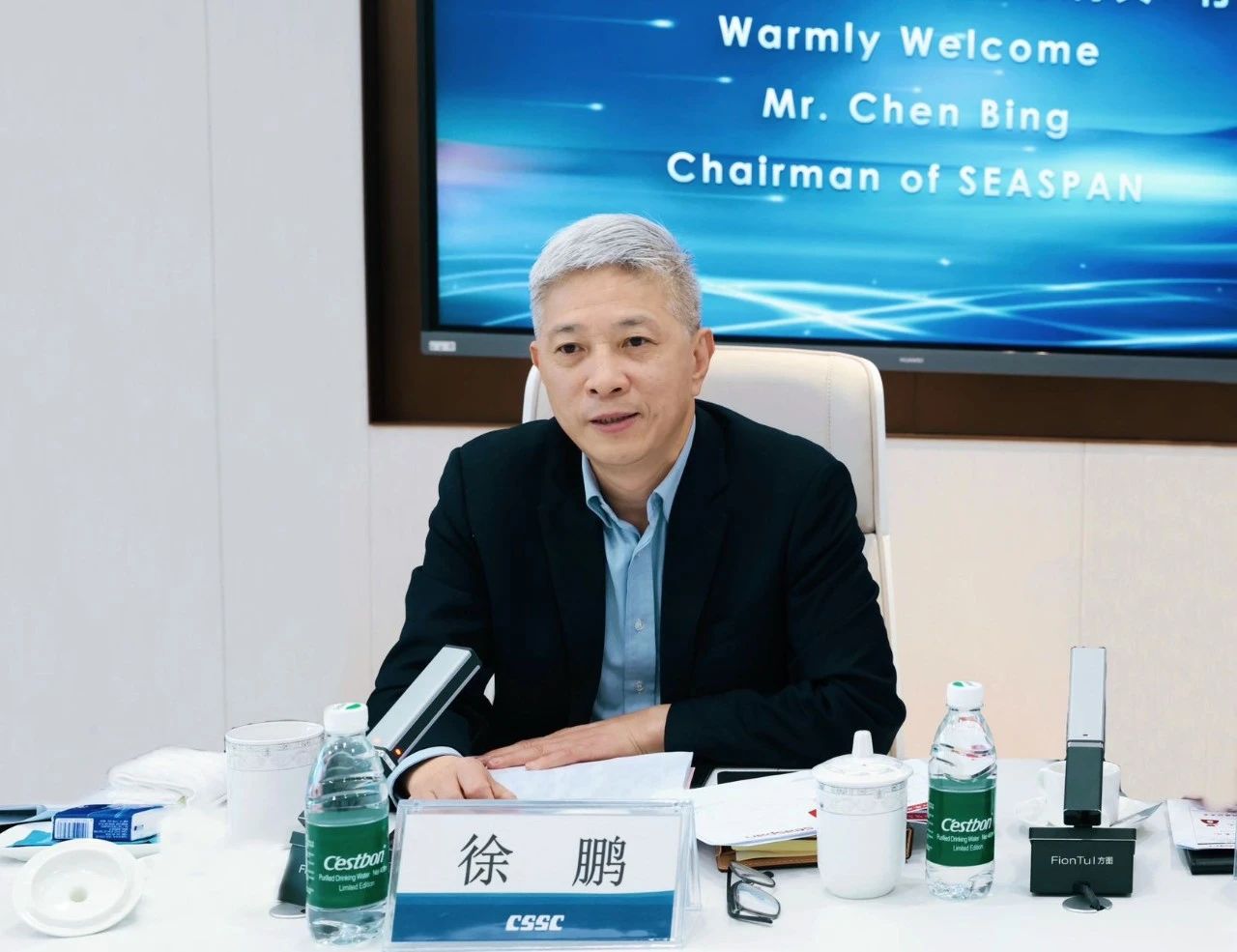徐鵬對陳兵一行的來訪表示歡迎,并感謝Seaspan公司對中船集團(tuán)的長期信任與支持。徐鵬表示,中船集團(tuán)將持續(xù)提升自身綜合能力,努力為客戶提供更優(yōu)質(zhì)的產(chǎn)品和服務(wù)。Seaspan公司是全球最大的獨立集裝箱船租賃船東公司,與中船集團(tuán)在長期合作中結(jié)下了深厚友誼。未來,希望雙方建立常態(tài)化溝通交流機(jī)制,在船舶建造與升級改造、國際船海市場拓展、船舶全生命周期運(yùn)維、綠色能源開發(fā)等方面持續(xù)深化進(jìn)一步合作,共同為行業(yè)持續(xù)健康發(fā)展作出應(yīng)有貢獻(xiàn)。
