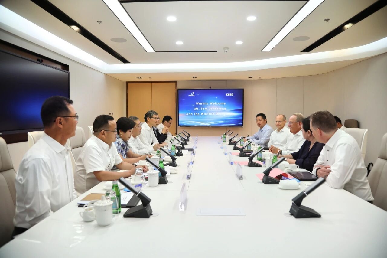 王國強對Tom Johnstone一行到訪中船集團表示歡迎,并介紹了中船集團發(fā)展情況。王國強表示,瓦錫蘭集團是中船集團的緊密合作伙伴,雙方具有良好的合作基礎,未來合作空間廣闊。希望未來雙方發(fā)揮各自優(yōu)勢,進一步加強在船舶動力總成研發(fā)、設計、制造、售后服務以及新能源、碳捕捉技術、智能化技術、海洋生態(tài)等領域的互利合作,加強中速機研發(fā)、設計領域的人才交流互動,開啟共創(chuàng)共贏發(fā)展新局面。