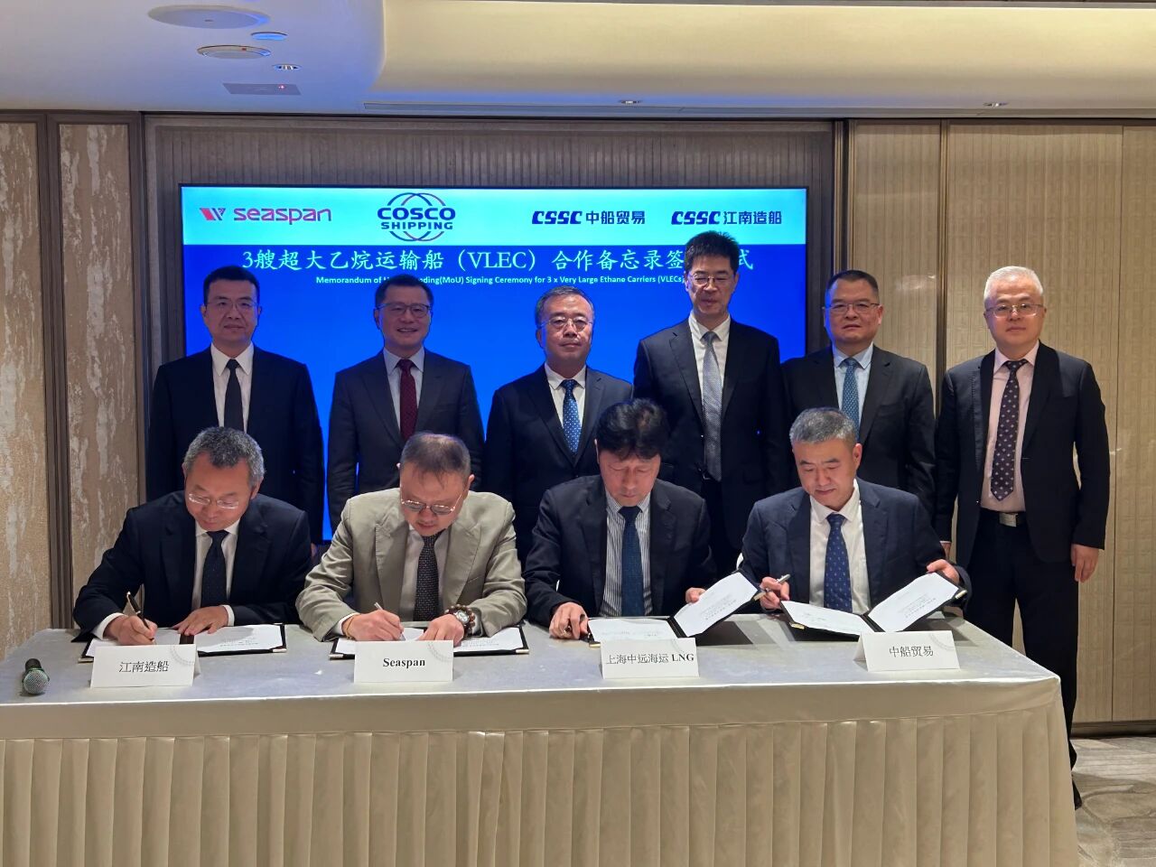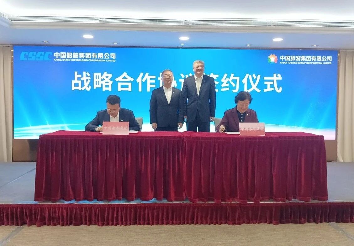 王國(guó)強(qiáng)同時(shí)見(jiàn)證了中船集團(tuán)與中旅集團(tuán)簽署戰(zhàn)略合作協(xié)議,中船集團(tuán)旗下江南造船聯(lián)合中船貿(mào)易與Seaspan、上海中遠(yuǎn)海運(yùn)LNG簽署超大乙烷運(yùn)輸船(VLEC)合作備忘錄;與相關(guān)中央企業(yè)舉行會(huì)談并簽署戰(zhàn)略合作協(xié)議。
