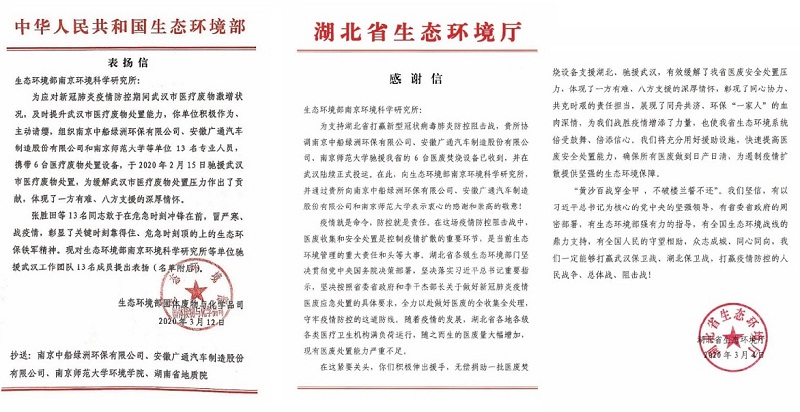 ????近日,國家生態(tài)環(huán)境部、湖北省生態(tài)環(huán)境廳分別發(fā)出表揚(yáng)信和感謝信,對(duì)中國船舶集團(tuán)所屬中船綠洲等在疫情防控期間作出貢獻(xiàn)的單位給予高度贊揚(yáng),表示衷心的感謝,并對(duì)包含中船綠洲旗下環(huán)保公司陳紀(jì)賽、陳良義、王小峰、周浩在內(nèi)的13名生態(tài)環(huán)境“鐵軍”提出表揚(yáng)。