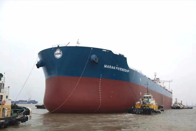 ????4月18日,中國船舶集團旗下外高橋造船為希臘MDM航運公司建造的系列船第四艘,也是最后一艘21萬噸散貨船(H1455)順利出塢,標(biāo)志著外高橋造船與該船東合作的