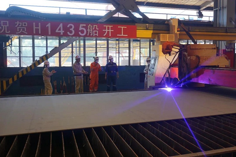 ????日前,中國船舶集團旗下外高橋造船為PTM公司建造的阿芙拉型油船順利開工。受疫情影響,船東駐廠組代表無法到場,特意委托英國勞氏船級社(LR)代表驗收開工鋼板情況、見證鋼板切割,并以“云簽字”的形式簽署了開工節(jié)點證書。