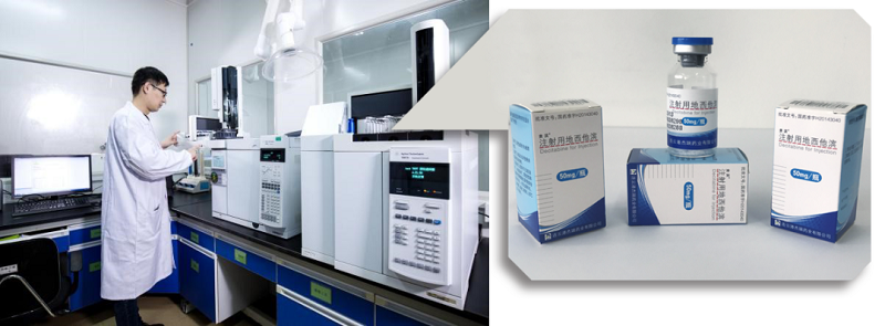 △ 研發(fā)現(xiàn)場(左)與注射用地西他濱樣品(右)