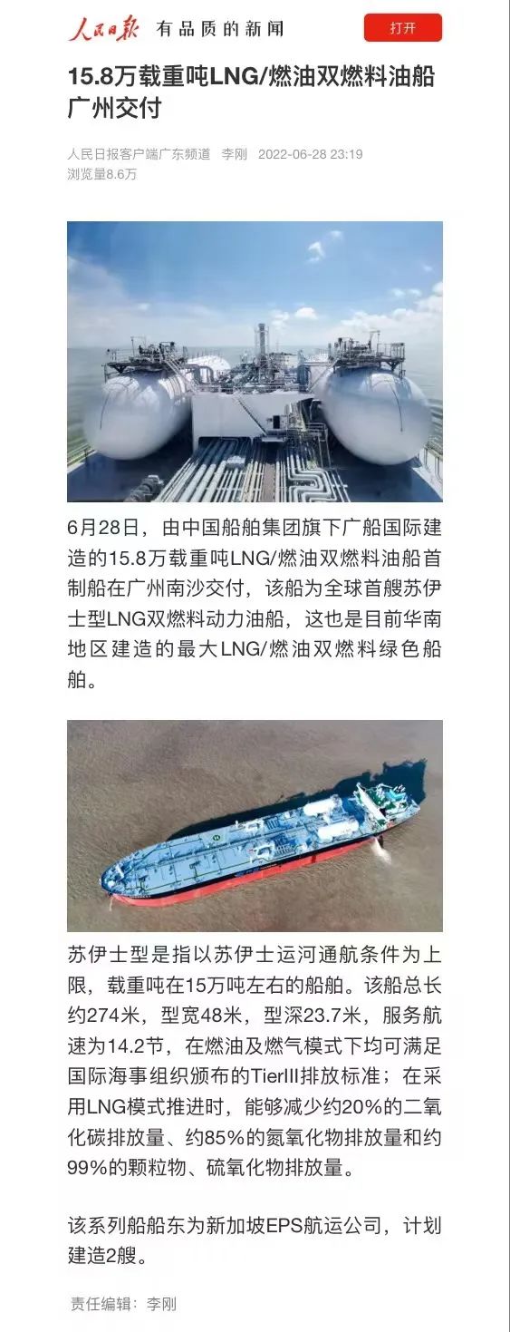 2022年5月30日交付,標(biāo)志著廣船國(guó)際成功攻克LNG雙燃料動(dòng)力船舶的研發(fā)和建造技術(shù),成為了華南地區(qū)首家自主研發(fā)和建造LNG雙燃料成品油船的船企。