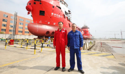 △每艘船下水時,姚勝華都要去現場看一看(右)