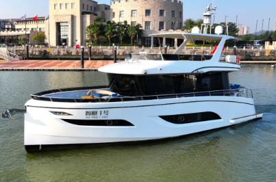在新技術(shù)、新材料應(yīng)用方面,“智艇1號(hào)”采用中國(guó)船舶集團(tuán)旗下科研院所自主開發(fā)生產(chǎn)的碳纖維材質(zhì)飛橋頂和自主開發(fā)的減搖陀螺,配備兩臺(tái)441千瓦的高速主機(jī)、兩臺(tái)15千瓦的軸帶發(fā)電機(jī)、一臺(tái)17.5千瓦的柴油發(fā)電機(jī),并特別配備了一套由中國(guó)船舶集團(tuán)旗下科研院所自主研發(fā)的50千瓦時(shí)鋰電池和岸電接口混合動(dòng)力系統(tǒng)。