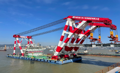 澳氹第四條跨海大橋鋼梁吊裝任務(wù)由“鐵建大橋起1”號起重船完成。該船由中國船舶集團(tuán)七〇八所研發(fā)設(shè)計,一期“L”型起重臂架為澳氹四橋工程專屬設(shè)計和打造,具有完全自主知識產(chǎn)權(quán)。