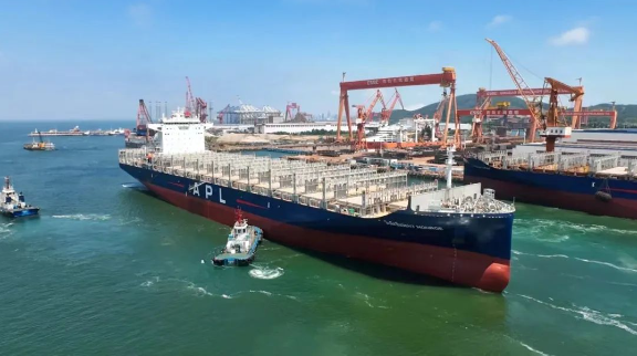 今年上半年,兩型船先后獲得訂單,30萬噸VLCC、32.5萬噸甲醇雙燃料礦砂船等多型綠色燃料船型同步接單。目前,北海造船21萬噸散貨船和32.5萬噸礦砂船手持訂單量穩居全球首位,新能源動力船舶覆蓋了LNG、甲醇、氨燃料等。