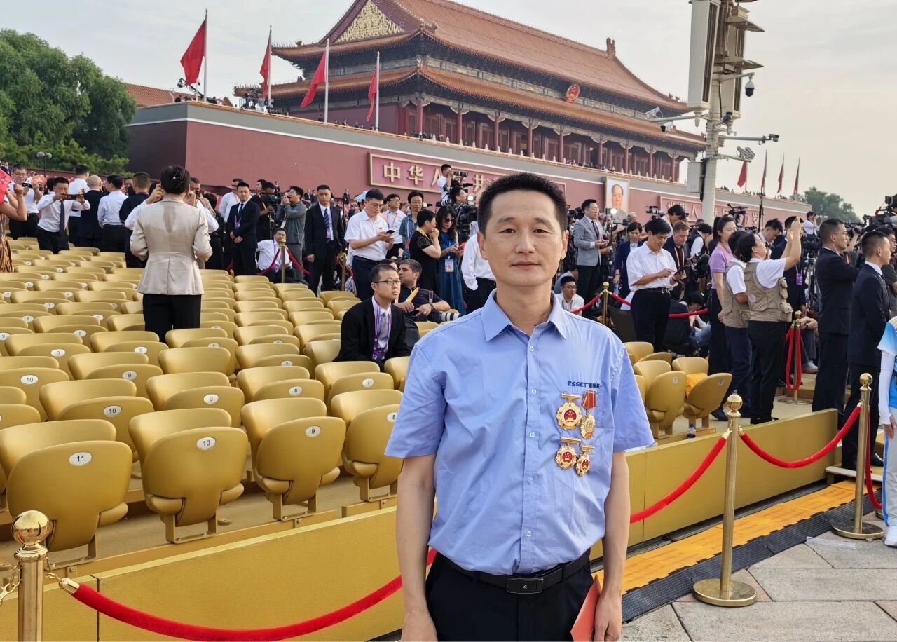 當(dāng)雄壯的《義勇軍進(jìn)行曲》奏響,五星紅旗冉冉升起,我情不自禁地起身肅立,與現(xiàn)場所有群眾代表一同高唱國歌。這一刻,跨越時(shí)空的民族記憶被瞬間激活,80年前先輩們?yōu)槊褡宕嫱鲈⊙獖^戰(zhàn)的壯闊畫卷仿佛在眼前重現(xiàn)。在閱兵分列式中看到了我們中船集團(tuán)研制的8型整裝裝備震撼出場,接受黨和人民的檢閱,倍感榮光,背后是我們中船人的不懈努力和創(chuàng)新精神。