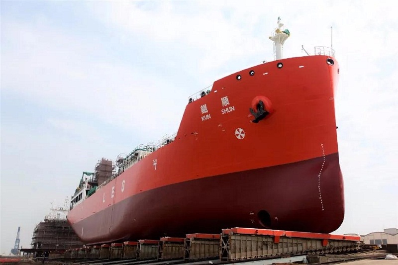 ????該船全長113米,型寬18米。貨罐采用雙圓筒C型獨立液貨罐設計,總容積6500立方米,可裝運乙烯、乙烷、丙烯、丙烷、無水氨等多種液化氣和化學氣體,滿足液化氣市場多種貨物的運載要求。