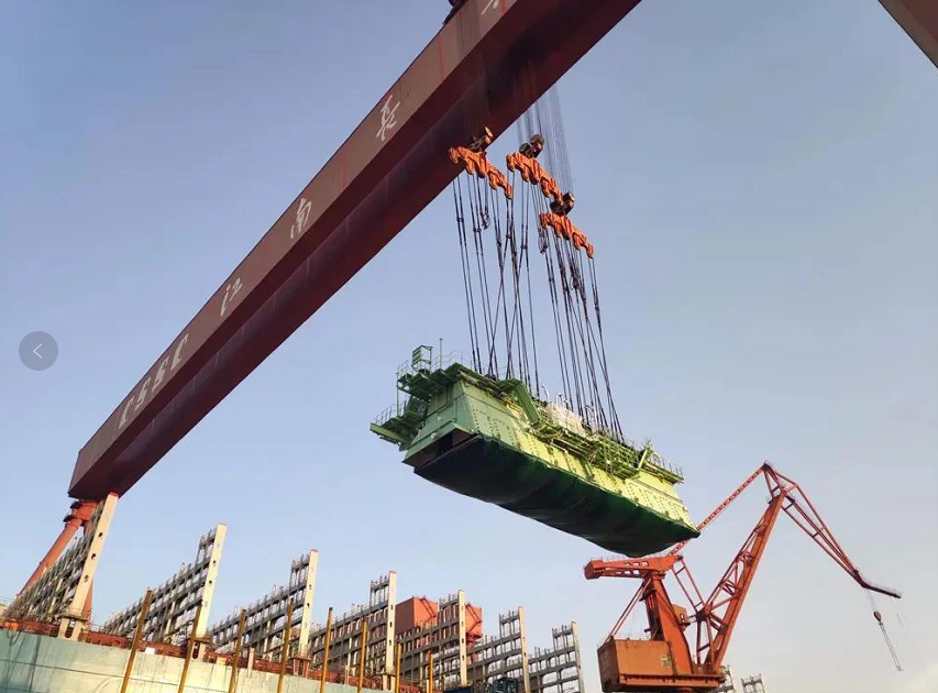 ????日前,中國(guó)船舶集團(tuán)旗下滬東中華順利完成23000TEU集裝箱船3號(hào)船的主機(jī)吊裝工作,標(biāo)志著該船向出塢邁出最關(guān)鍵一步。主機(jī)吊裝整個(gè)過程用時(shí)不到5天,同時(shí)取得僅用2.5天就完成5大件吊裝的新突破,為同行業(yè)系列船最短紀(jì)錄。