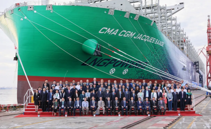 被譽為“明星”船型的這艘雙燃料動力集裝箱船,一直以來備受業界廣泛關注,她的成功交付是我國船舶工業高質量發展取得的重要成果,彰顯了中國船舶集團作為世界一流造船集團雄厚的研發、設計和建造實力,標志著中國船舶集團在世界大型集裝箱船領域成功實現從跟隨到引領,書寫了中國船舶工業新的榮耀。