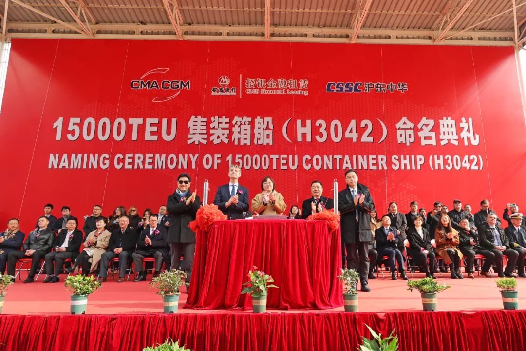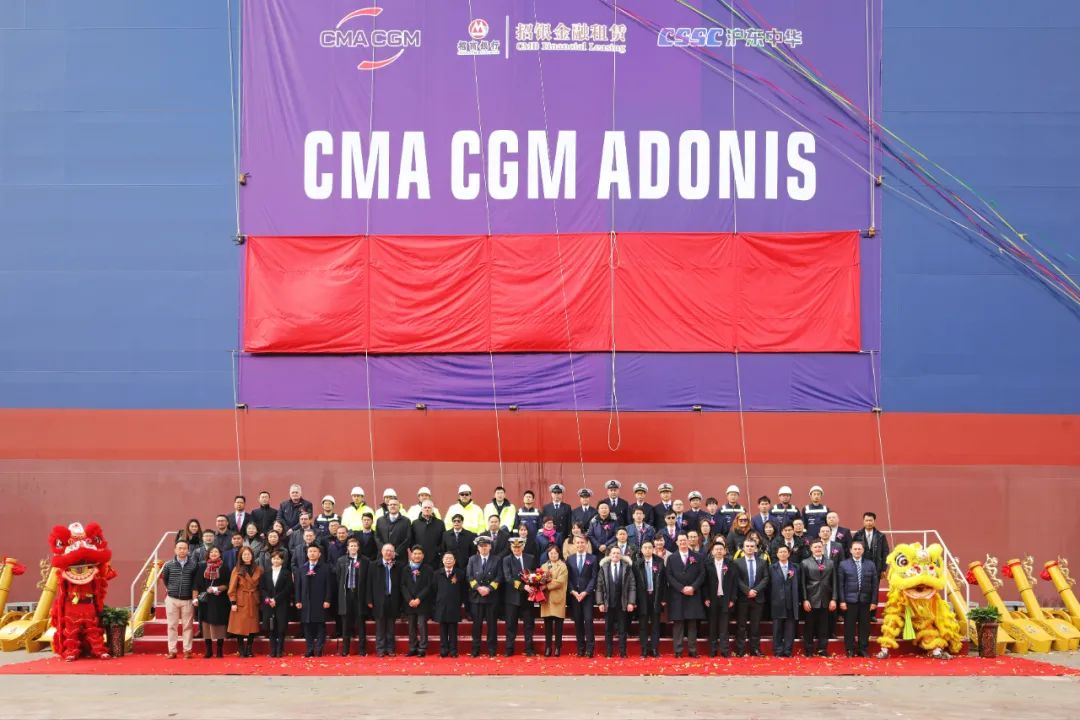 2月28日,中國船舶集團有限公司旗下滬東中華造船(集團)有限公司聯合中國船舶工業貿易有限公司為法國達飛海運集團建造的15000TEU超大型集裝箱船“達飛·阿多尼斯”號在上海命名。這不僅是為達飛集團量身定制的5艘常規動力系列箱船中的最后一艘,實現了平均每月命名交付一艘的既定目標,也是繼由該公司建造的5艘全球首創最大、最先進23000TEU雙燃料動力集裝箱船之后,又一款被市場追捧的超大型集裝箱船項目完美收官,進一步鞏固了其全球超大型箱船建造基地的地位。