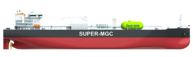 # 該型船全船貨艙布置3個獨立全冷式A型液罐,采用低溫碳錳鋼建造,總艙容達到48000立方米,除可裝載LPG、氯乙烯單體(VCM)等多種石化產品貨物外,還滿足裝載液氨以及換貨運輸需求。