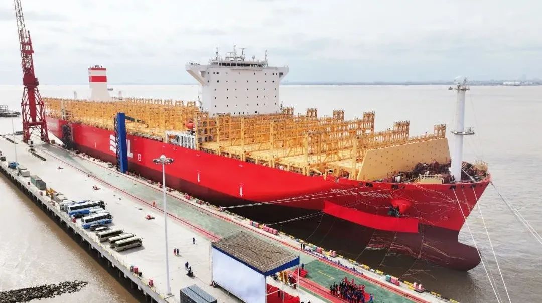 近日,中船集團旗下江南造船為太平船務建造的14000TEU液化天然氣(LNG)雙燃料動力集裝箱船系列船3號船“KOTA Ebony(檀城)”號命名交付。