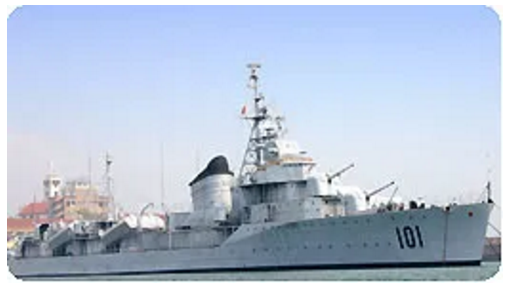 鞍山艦,舷號101,原為前蘇聯(lián)太平洋艦隊(duì)的一艘“雷擊艦”,滿載排水量2581噸。1954年10月,鞍山艦作為我國向蘇聯(lián)購買的第一艘驅(qū)逐艦駛抵青島,1992年4月24日退出現(xiàn)役,作為重要的歷史文物陳列于海軍博物館。