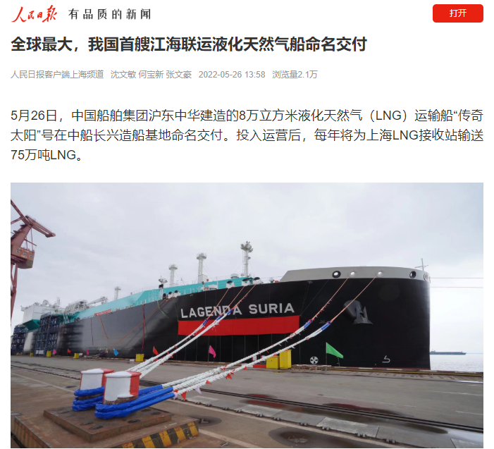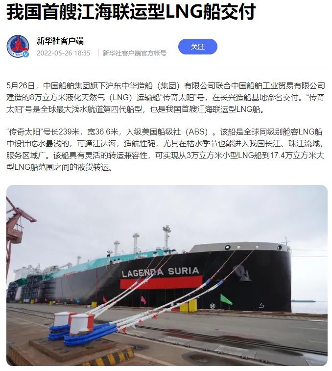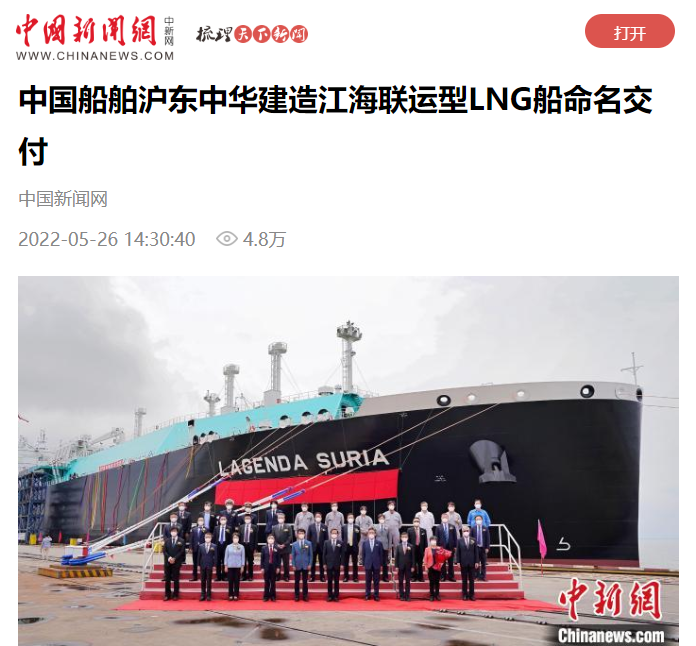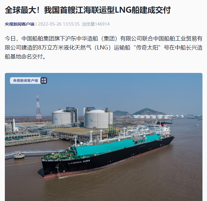 央視新聞聚焦、人民日報關注!全球最大,我國首艘江海聯運型LNG船命名交付