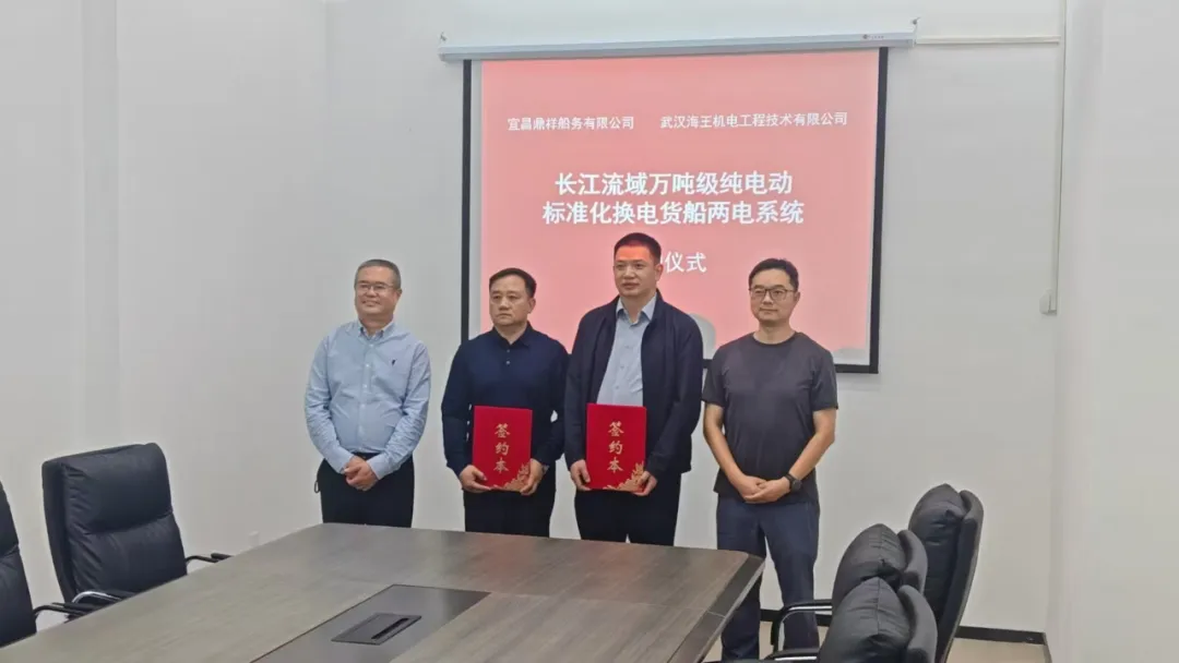近日,中船集團七一九所旗下武漢海王機電工程技術有限公司與宜昌鼎祥船務有限公司達成關鍵合作,成功簽訂4船(套)長江流域萬噸級電動標準化換電貨船兩電系統和智能系統供應合同,標志著雙方在綠色智能船舶裝備領域的合作正式落地。