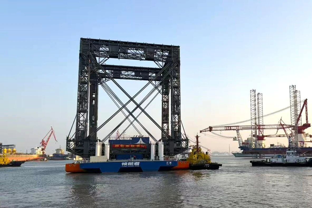面對總體方案復雜、碼頭資源緊缺和交付周期緊張等多重挑戰,以華南船機廣州子公司為主體的項目團隊,充分發揮大型裝備總裝制造經驗及其項目管理能力,有力有序統籌全鏈條生產等方面資源,迅速響應、高效協同,順利完成“領航者號”網系回收系統關鍵任務。